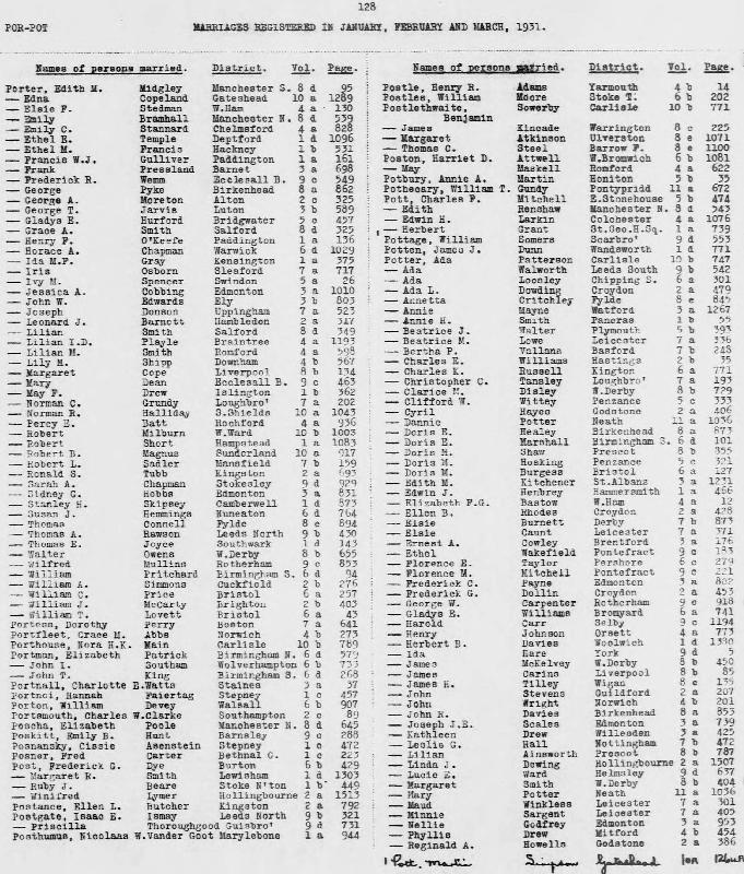 Source: PORTER, Frederick Reginald & WEMM, Edith Eliza 1931 Marriage, PORTER, Frederick Reginald 1931 Q1 Marr FreeBMD